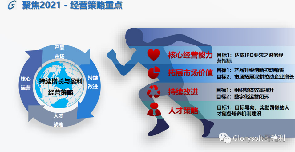 哥瑞利高(gāo)級副總李遒展望了公司發展三年戰略,2021年的(de)經營策略重點,聚焦人(rén)才、運營、産品市場(chǎng)以及持續改進方案,以及OKR建設結合積分(fēn)制(zhì),鼓勵團隊執行(xíng)力和(hé)培養創新文(wén)化。