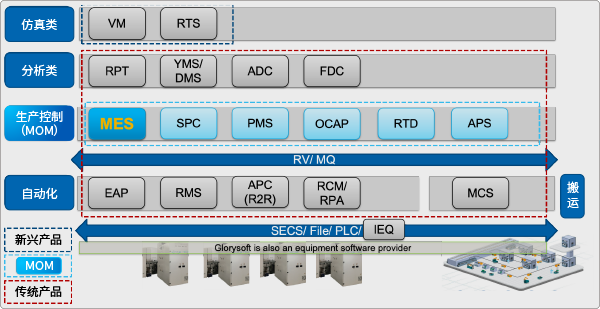 MES 及相(xiàng)關的(de)MOM 系統,作爲Glorysoft CIM 應⽤系統框架的(de)核⼼,起到(dào)承上(shàng)啓下的(de)樞紐作⽤,管理(lǐ)參與⽣産運營的(de)⼈、機、物(wù)、法、環等⽣産要的(de)核⼼邏輯。